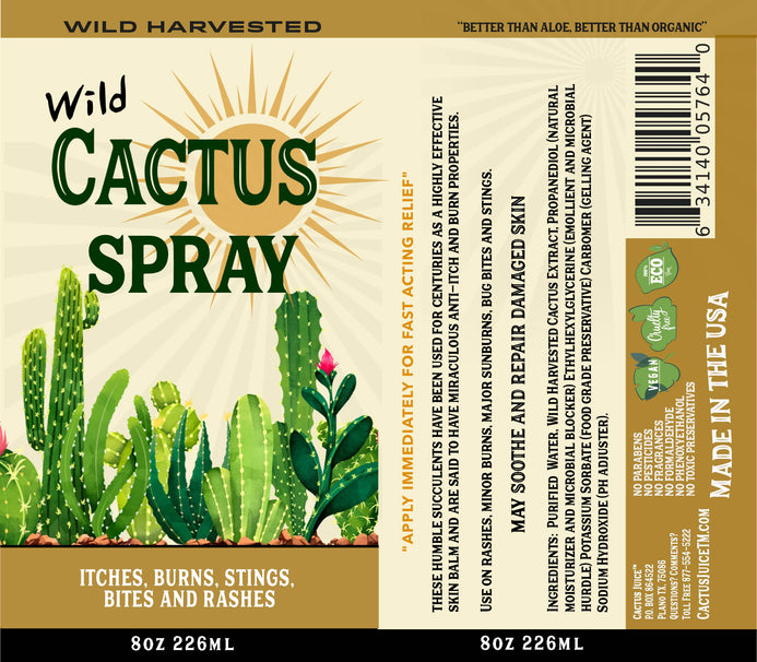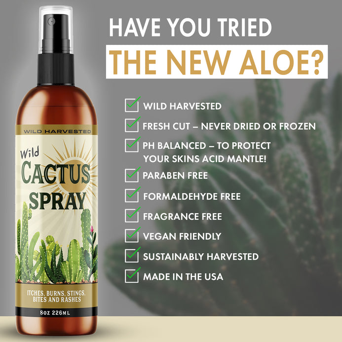 Wild Harvested Cactus Spray - “Better than Aloe, Better than Organic” Natural Wild Cactus Ointment. Instantly Soothes Sunburns & Rashes. Immediate Itch and Sting Relief. Great for Minor Cuts & First Aid.